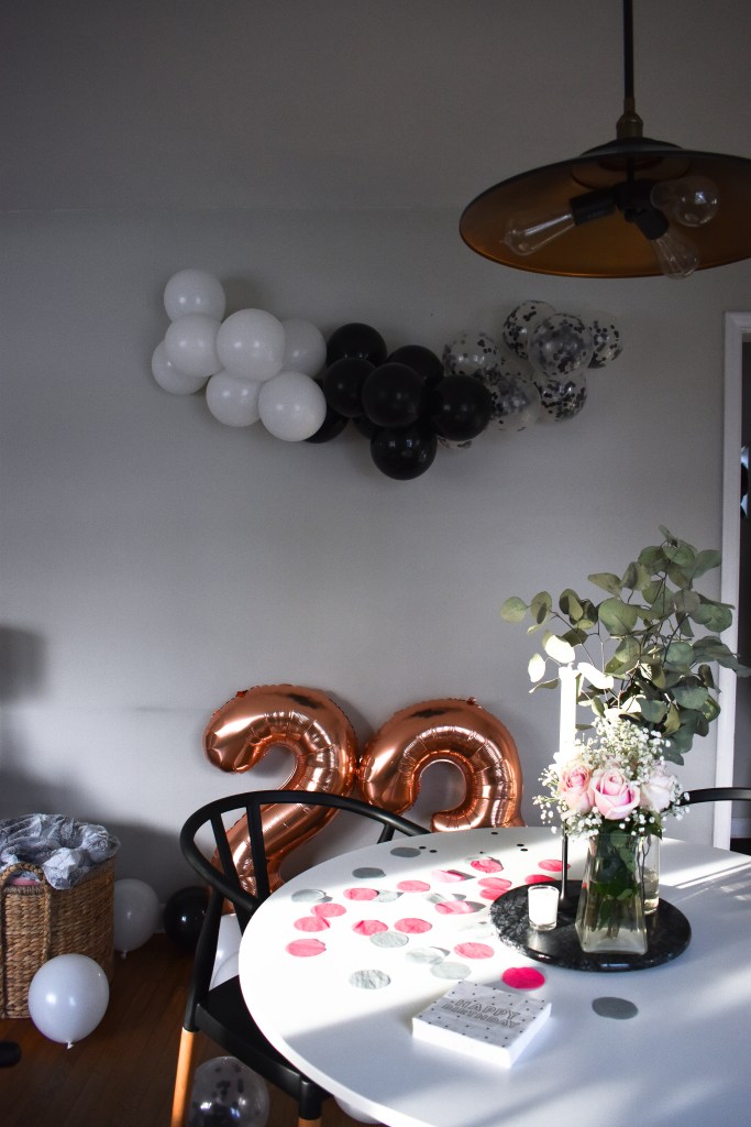 I followed a balloon garland tutorial I found off Pinterest if you’re interested in creating your own. Fun fact: I can’t tie balloons, so my boyfriend had to tie all of them and let’s just say he was not thrilled about it. But, it was for my birthday so he sucked it up;)