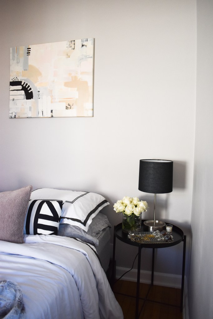 If you’re curious about the black metal side tables themselves, we bought them for UNDER $20 at Ikea. We wanted something simple and affordable, and these certainly fit the bill. They were super easy to assemble as well, which is a huge win because you’re always taking a gamble on Ikea furniture lol. We’ve been happy with them overall, but I don’t like the lack of storage. You don’t realize how much random crap you have until you don’t have a drawer to shove it in. So, I would not recommend purchasing these as your bedroom side table, but they’d probably work well in a living room (depending on the size of your other furniture) or even a guest bedroom since they most likely won’t need much storage. They’ve served us well for the price, and we don’t plan on replacing them soon, but we probably would’ve done something different in hindsight. FYI they do scratch easily, so be mindful of that.