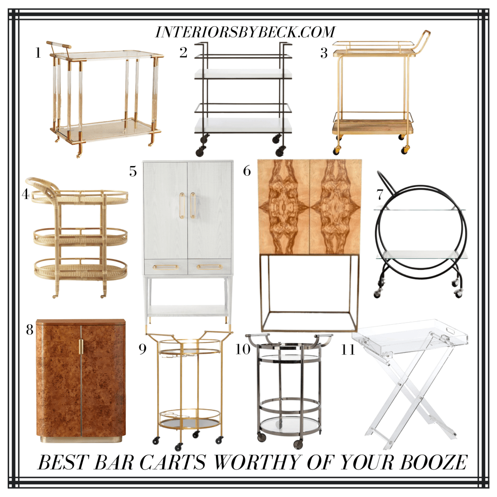 Now that you know how to style a killer-looking bar cart, I wanted to share my favorite bar carts that are worth styling! Any one of these would look gorgeous in your home! A few are total splurges, but I made sure to include more affordable options as well. Here we go!