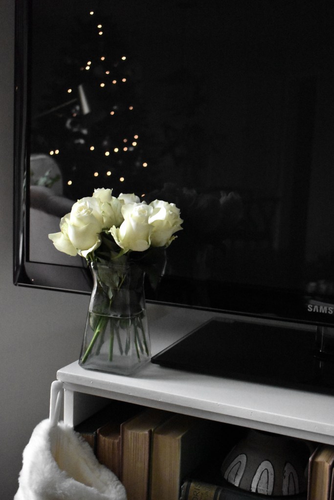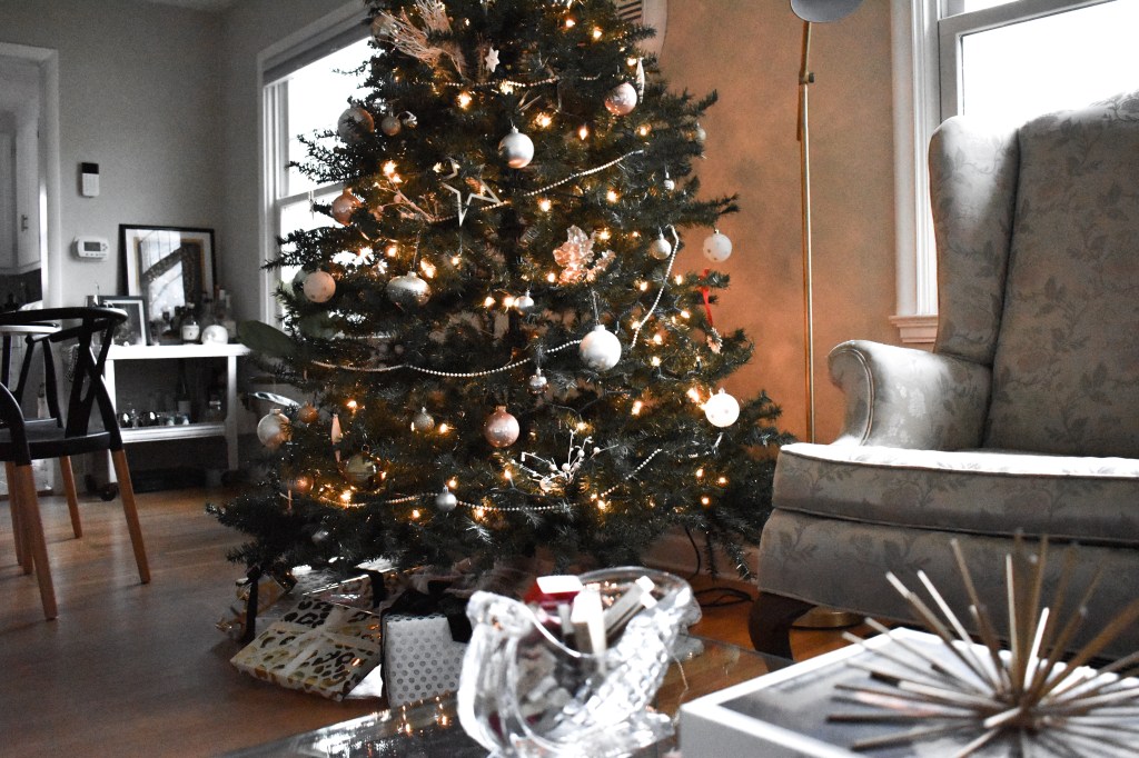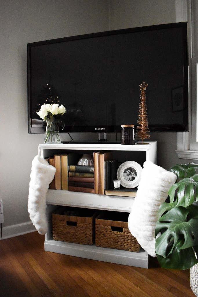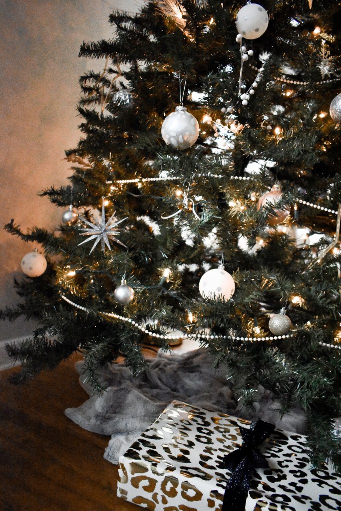 For your tree skirt, I suggest going simple and using a faux fur throw blanket that you probably have draped over your couch at this very moment. It’s versatile and much more cost effective than buying a tree skirt that will sit in a storage closet for eleven months of the year. Just be sure to wash it afterwards so you don’t cozy up with tree bristles stabbing your leg 😉 Our throw was gifted years ago, so I linked a similar Target option.
