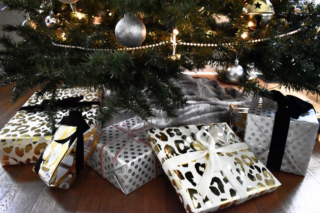 I saved my favorite part for last, and that’s wrapping paper! I like to wrap gifts early, so I can use the cute wrapping paper as a decor element as well. I found most of these papers at Home Goods and I bought the ribbon from Jo Ann’s.