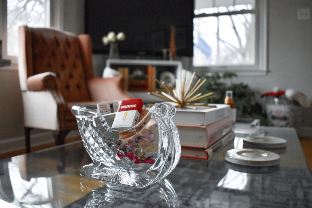 This crystal sleigh is another fun, neutral way to mix things up. I typically store my decorative match boxes in a crystal ashtray. I don’t smoke, but it’s a gorgeous decorative piece lol. This slay is a family heirloom, so it can’t be linked.