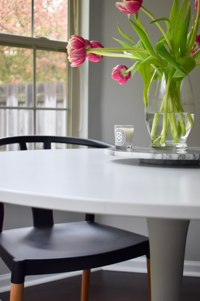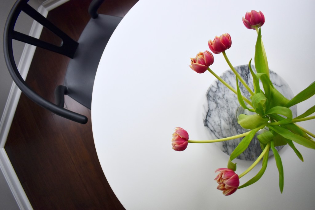 It doesn’t take a rocket scientist to know that a vase of fresh flowers makes for a great dining room centerpiece. These bad boys are peony tulips from Trader Joe’s. How lucky am I that my roommate buys fresh flowers for the house every single week?