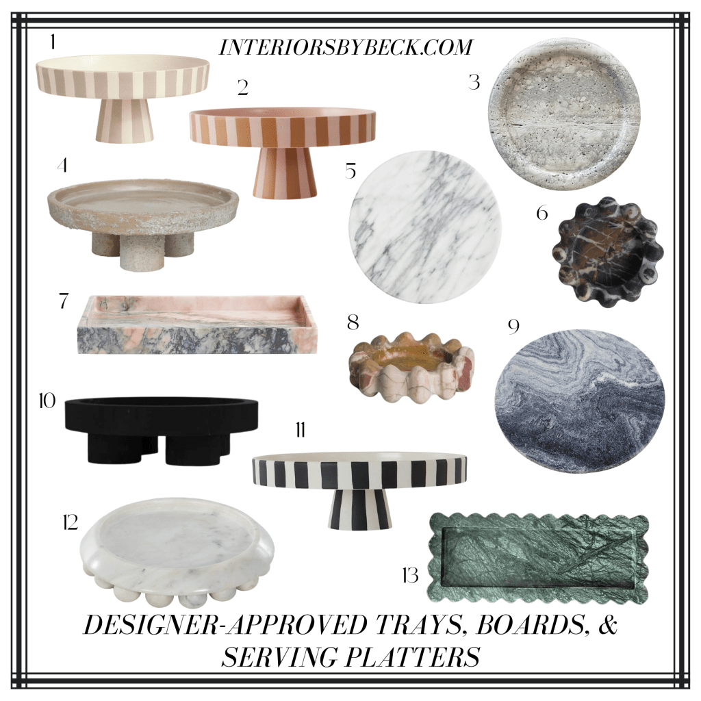 I’ve linked all of my favorite ridiculously chic trays, pedestals, and boards in the image caption above. Happy shopping. As always, leave any questions or comments below.
