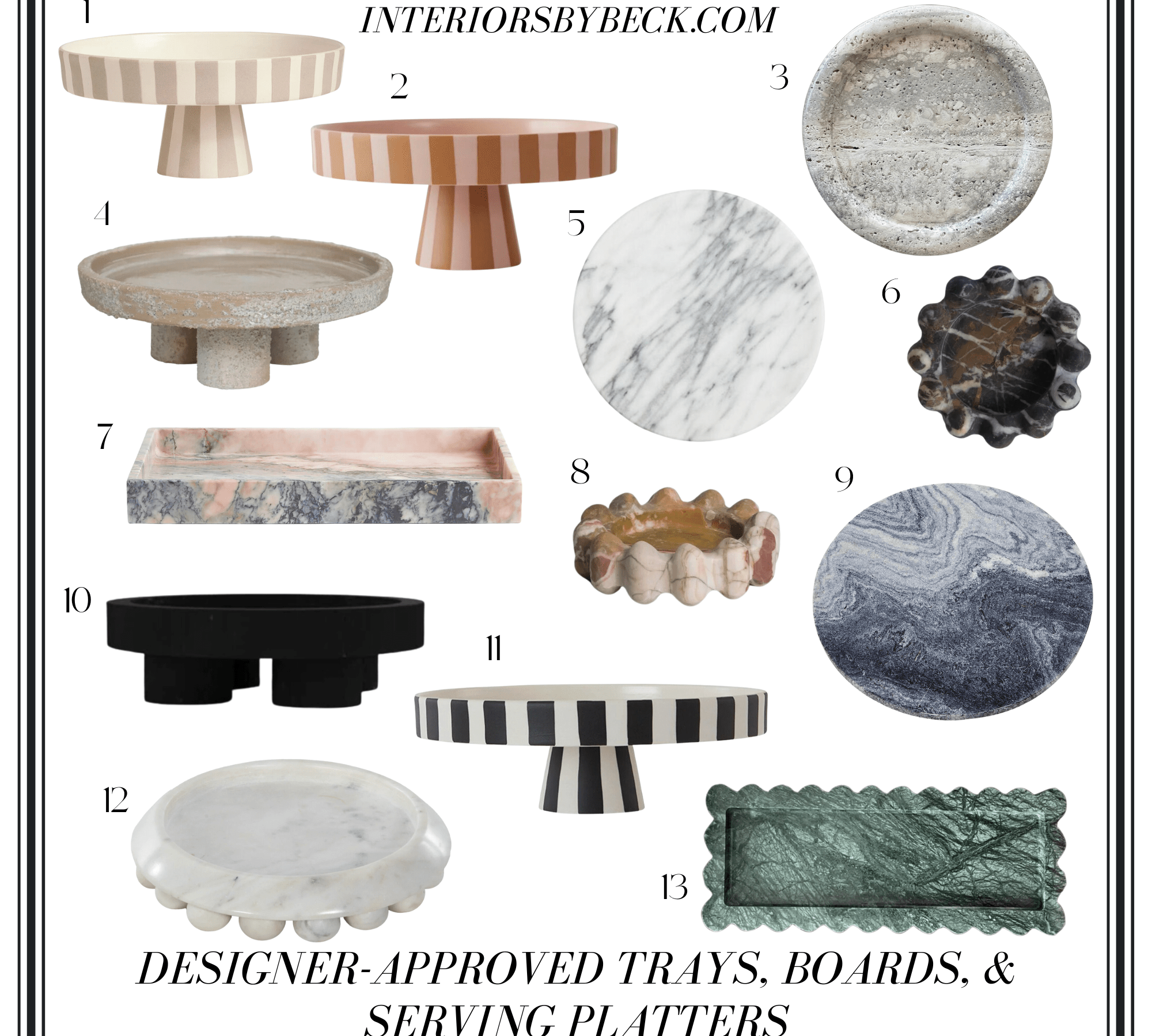 Curating a list of design-forward catchall trays and serving boards is the equivalent of sipping a fine wine for me. Probably because I own one for just about every surface in the home, including the entryway table, coffee table, kitchen countertop, dining room table, bathroom vanity, bedroom nightstand, and even the toilet tank. You get the picture. You can use trays to display your … Read More DESIGNER-APPROVED TRAYS, BOARDS, & SERVING PLATTERS