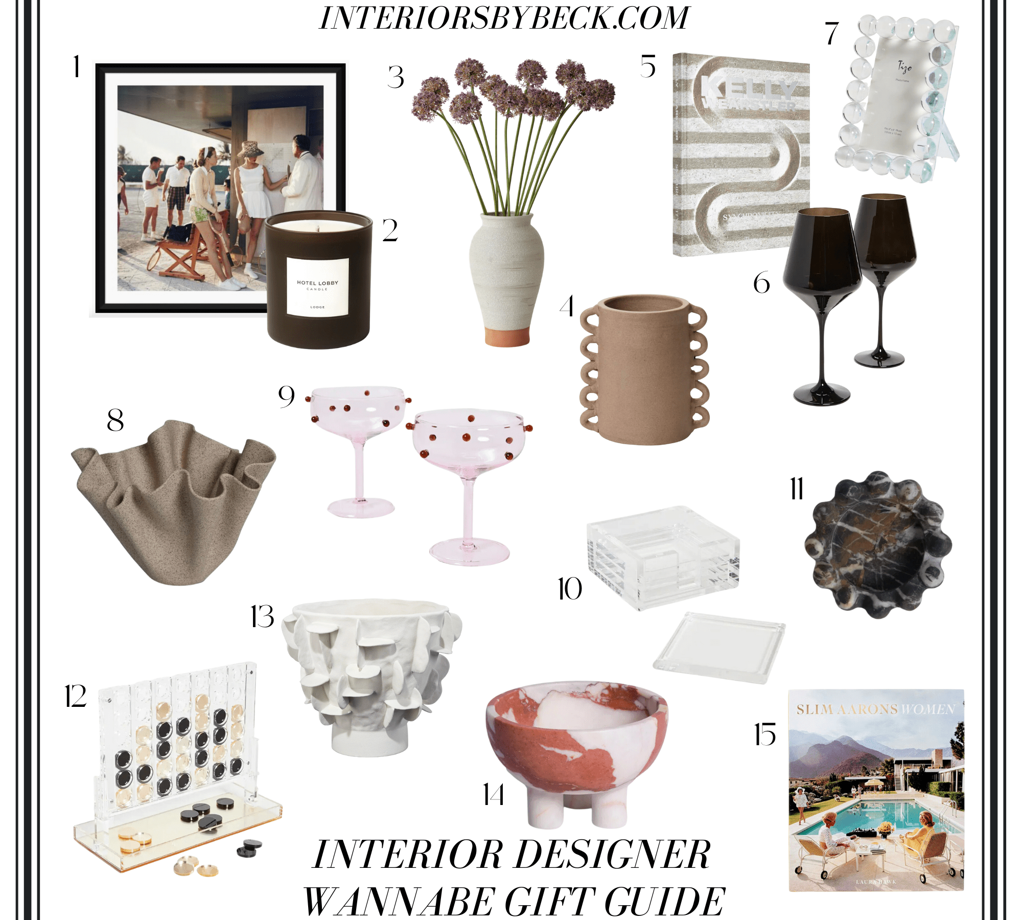 As a wannabe interior designer myself, I couldn’t feel more qualified to curate this particular gift guide. Any design-obsessed person is going to love a nice coffee table book, beautiful piece of art, or boujee overpriced stemware. And can we have a moment to gawk over the Tizo Design lucite connect 4??? I’m not a huge board gamer, but this beauty may convert me. … Read More GIFT GUIDE FOR THE WANNABE INTERIOR DESIGNER IN YOUR LIFE